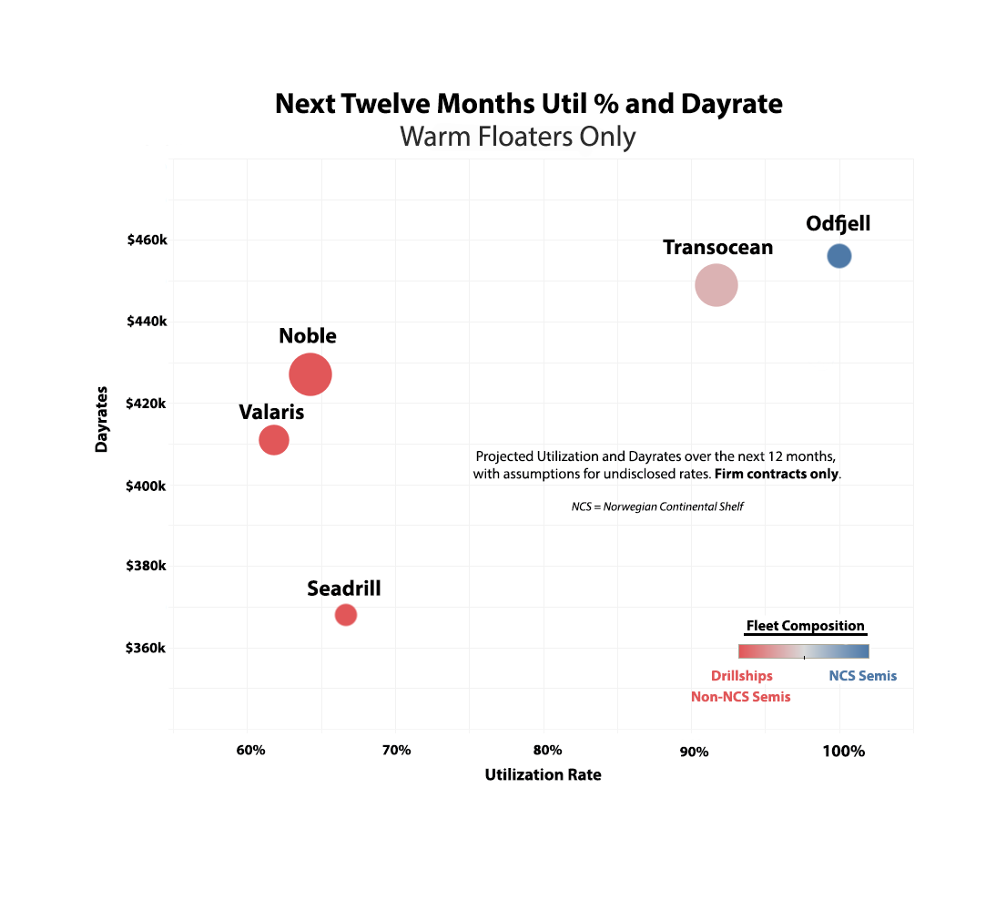 In “Scrap, Baby, Scrap”, I argued Noble could save nearly $100mm in annual *potential* warm stacking costs (if idle) by scrapping various lower tier rigs while having minimal impact on its Net Asset Value. In my opinion, these non-core rigs include Globetrotter I, Globetrotter II, Apex, Endeavor, Reacher or Resolute and *maybe* one of their DSS21 semisubs.