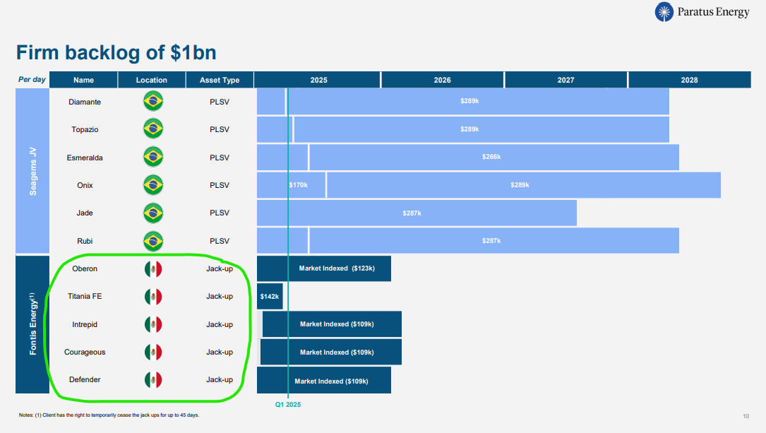 Borr already has seven jackup rigs in Mexico and an acquisition of Paratus’ five jackups in the country would have a meaningful benefit as it relates to pricing power with less competition for work in 2026-2027.